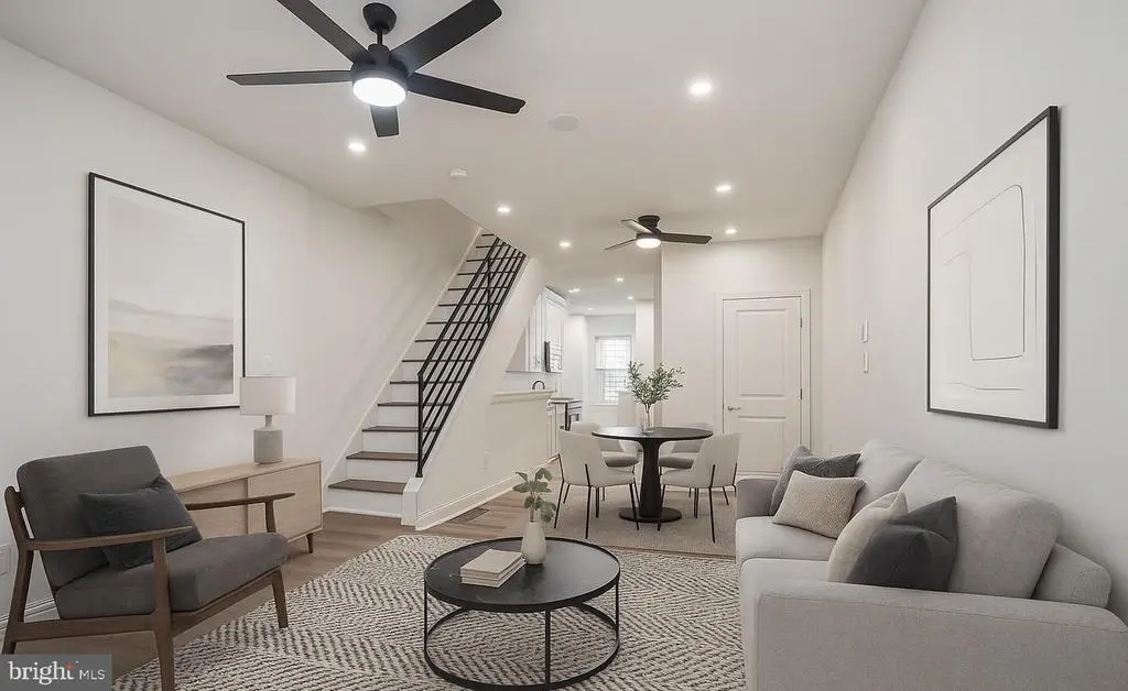 This beautifully renovated three-bedroom residence seamlessly blends timeless character with modern sophistication. A convenient first-floor half bath complements a striking exposed brick accent wall, adding warmth and architectural interest.